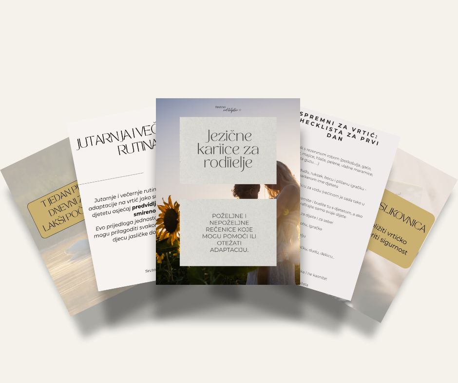 ✔ 5 PDF materijala za ispis (checkliste, igre i slikovnice, jezične kartice, rutine i tjedni plan prije polaska u vrtić)